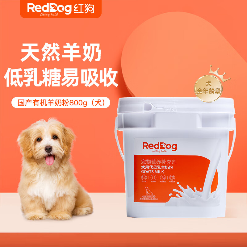 红狗RedDog 羊奶粉狗800g 幼犬幼猫奶粉老年犬猫怀孕钙低乳糖有机奶狗奶粉生病虚弱宠物 狗狗专用