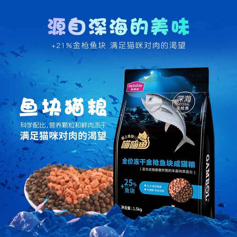 麦富迪(MYFOODIE)喵喵鱼猫粮3斤鲜肉冻干粮增肥发腮幼l猫营养粮9斤美短英短 金枪鱼肉块成猫粮3斤