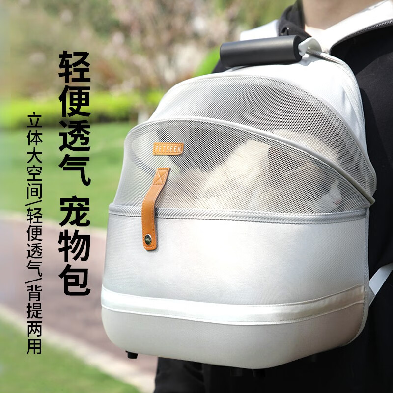 宠觅(petseek)宠觅猫包外出便携大容量猫咪双肩背包宠物太空舱透气狗包宠物用品 玛瑙灰中号【猫10斤/狗7斤】