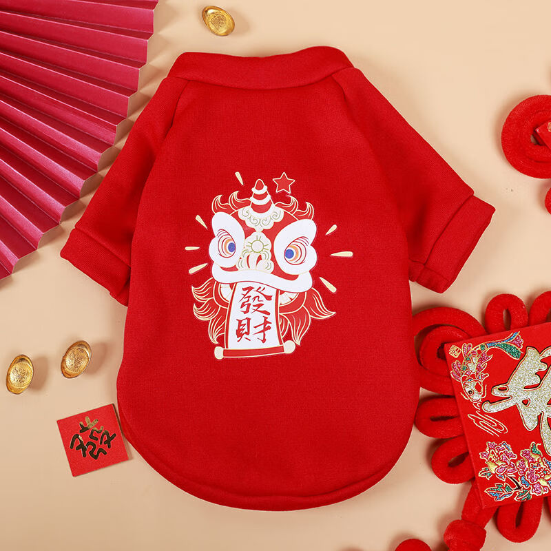 风宠新款宠物衣服猫咪小型犬冬季保暖泰迪比熊博美幼犬狗狗衣服秋冬款 红色卫衣-舞狮发财 XS建议1-2斤