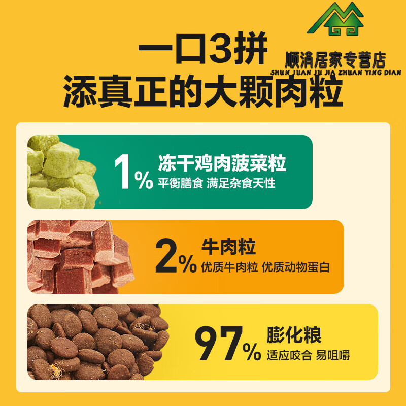 网易严选三拼犬粮 鲜肉冻干狗粮成犬幼犬小大型犬狗狗专用粮2kg 三拼犬粮 2kg