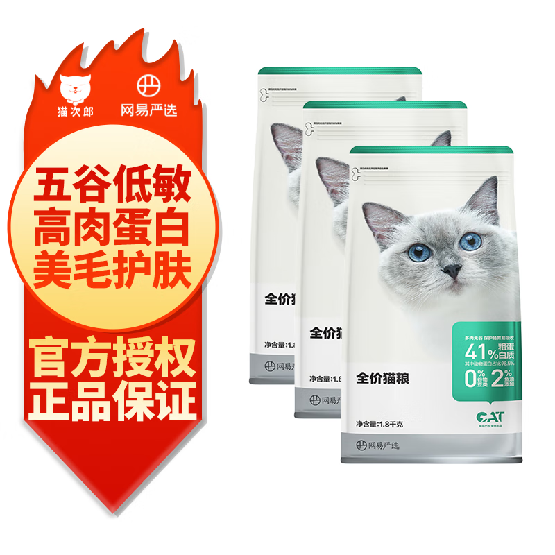 网易严选全价冻干双拼猫粮宠物主粮全价天然无谷粮1.8kg 【爆款】2.0配方猫粮1.8kg*3包