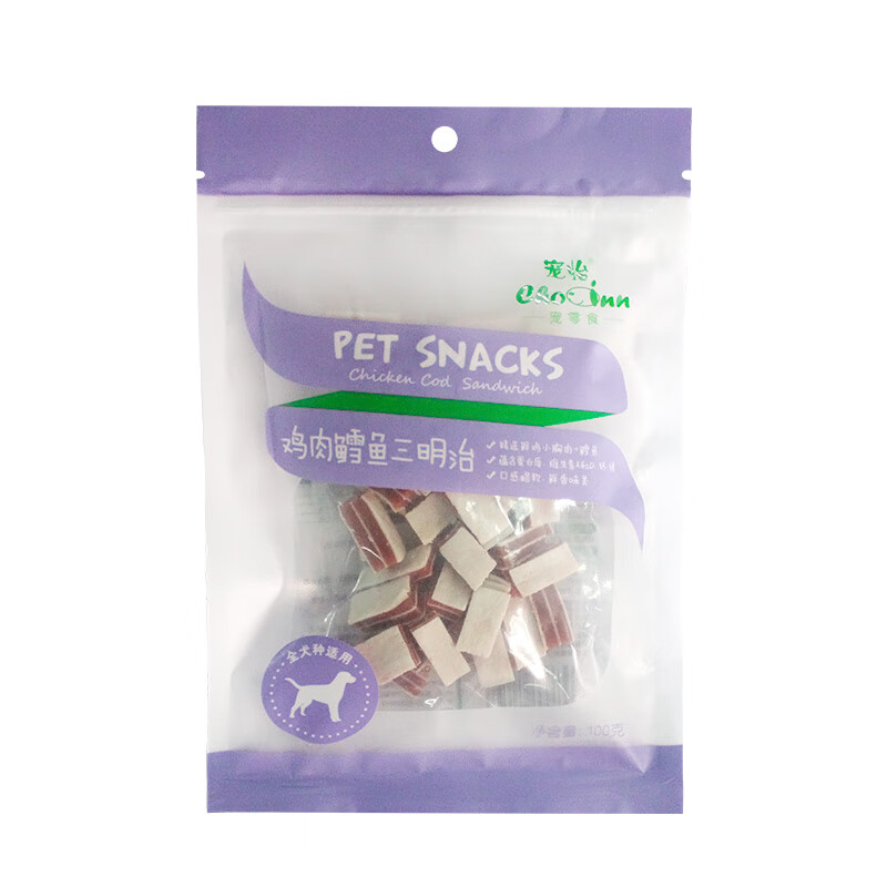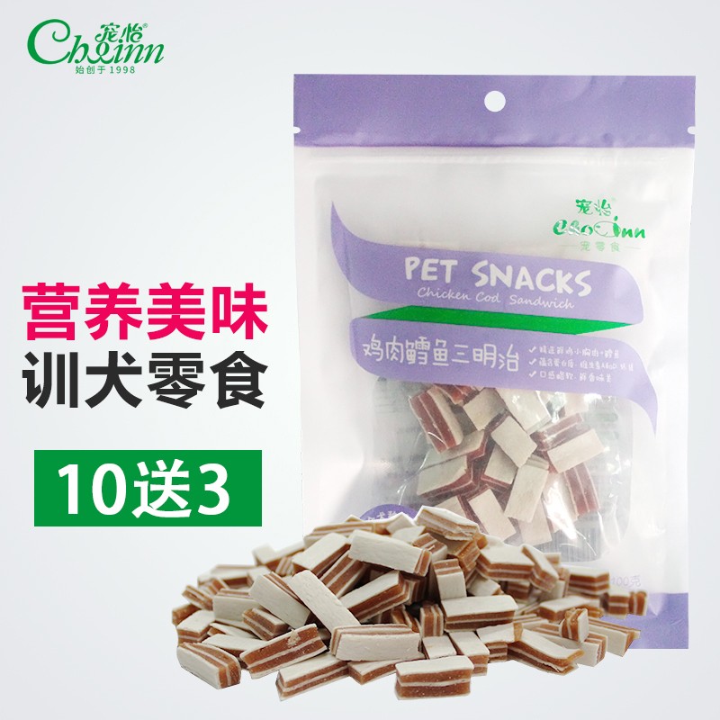 宠怡狗狗零食公鱼缠肉小鱼干鸡肉条三明治泰迪金毛磨牙棒洁齿幼犬软丝训犬奖励 鳕鱼三明治100g