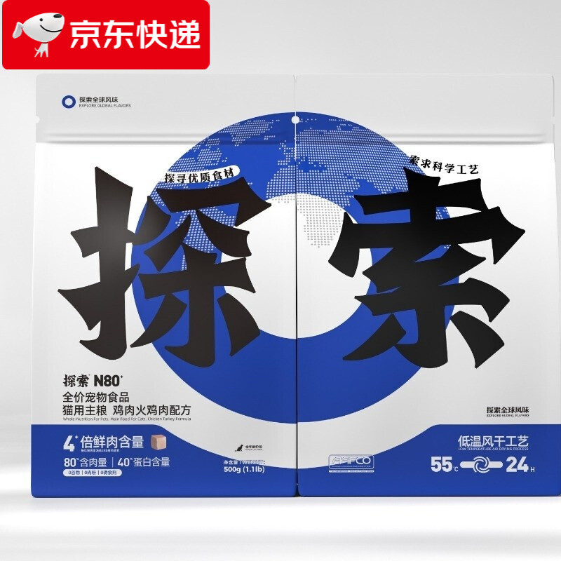 HATELI探索猫粮N90N80成猫幼猫风干鲜肉无谷猫干粮含肉量高无诱食剂无肉粉鹿肉鸡肉火鸡肉 鸡肉火鸡肉配方(含肉80%)500g