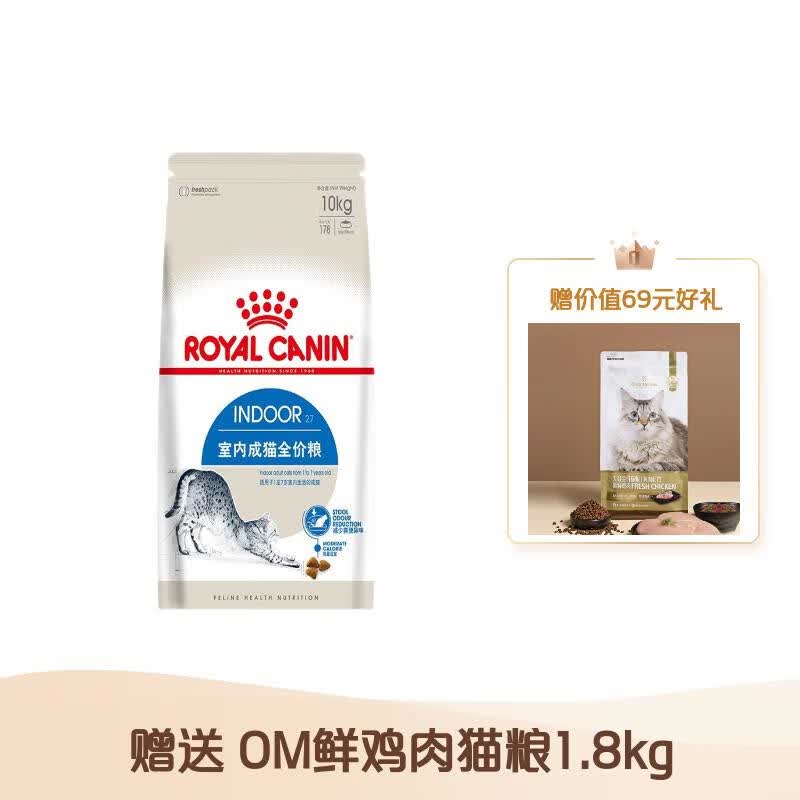 皇家(ROYAL CANIN)I27室内成猫全价粮10kg【12个月以上】