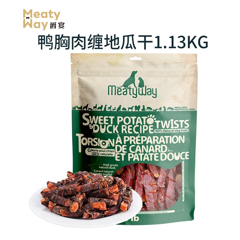 爵宴(MEATY WAY)大包实惠 宠物狗狗零食鸭胸肉干 训犬大礼包鸭肉干908g 狗狗通吃 鸭肉甘薯卷1.13kg