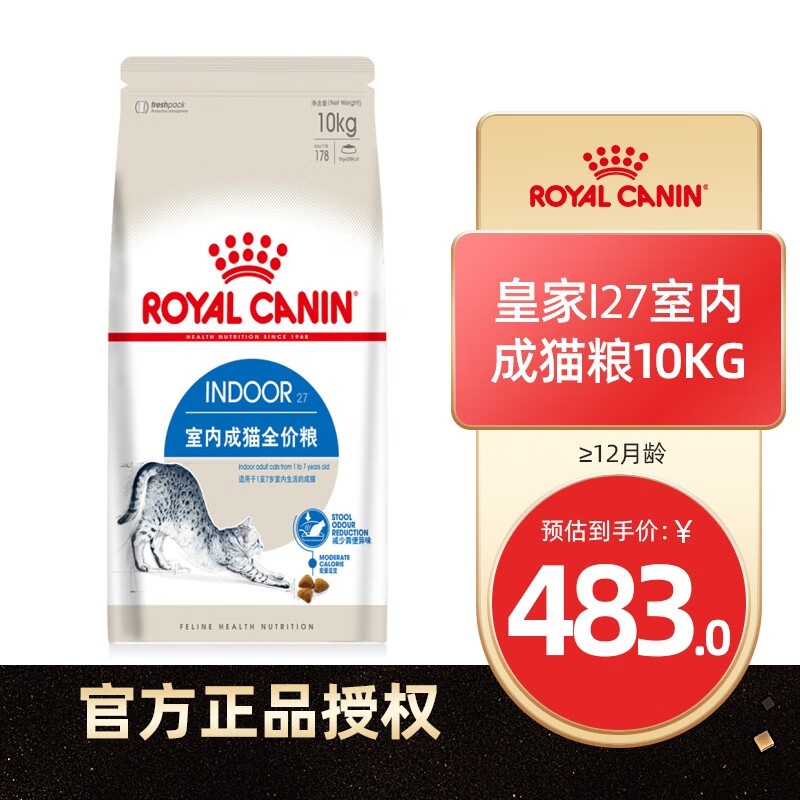 皇家猫粮 i27 室内成猫猫粮 全价粮 10kg装20斤去毛球减少异味通用粮