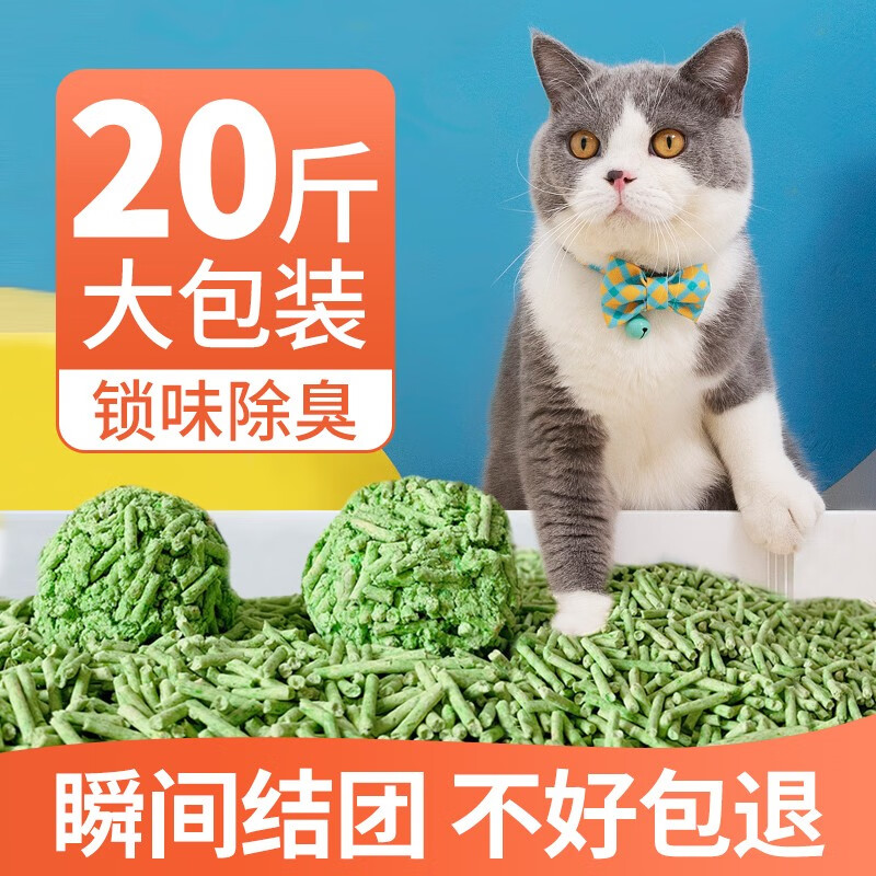 鄂芯鲜猫砂膨润土5kg混合豆腐猫砂可冲厕所无尘猫咪用品懒人豆腐砂猫沙 【实惠装】绿茶味猫砂10kg丨强力祛臭