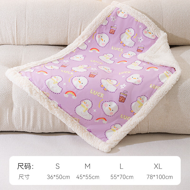 嬉皮狗(hipidog)宠物毛毯加厚羊羔绒秋冬季可爱小熊卡通猫咪被子垫子泰迪毯子 紫色小鸭子 S(30*50cm)