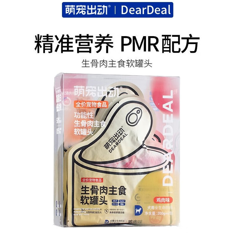 萌宠出动DearDeal软罐头狗狗主食罐拌狗粮营养食品通用型犬成幼犬湿粮包 【高适口性】鸡肉200g*4包
