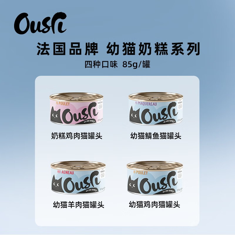 ousri 泰国原装进口无谷猫罐头【85g*24罐】 幼猫宠物湿粮 【整箱】奶糕鸡肉口味85g*24罐