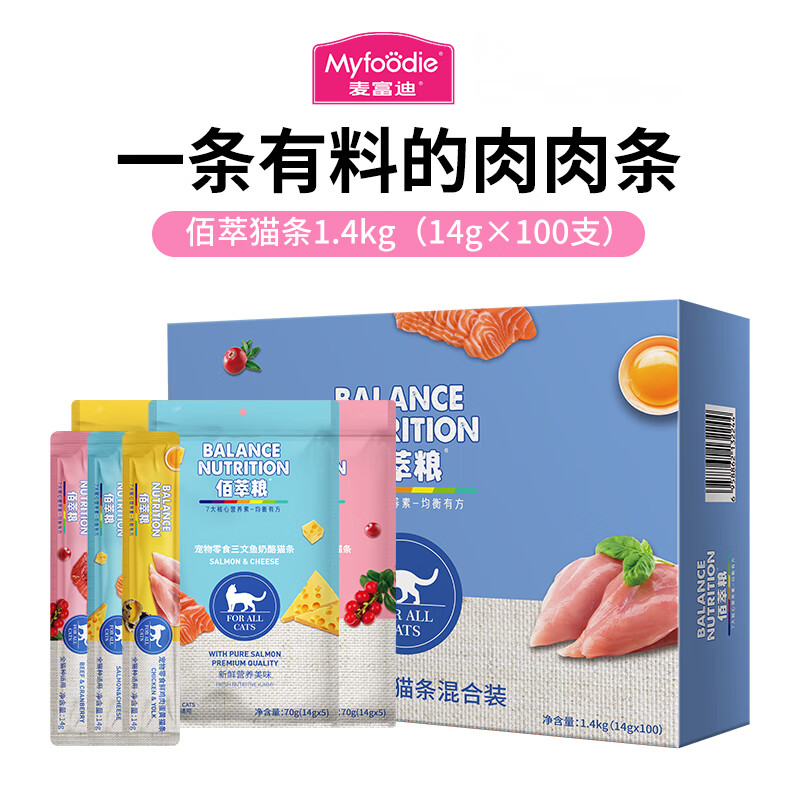 麦富迪佰萃猫条 猫零食成猫幼猫补水妙鲜湿粮 混合装14g*100支 *100支