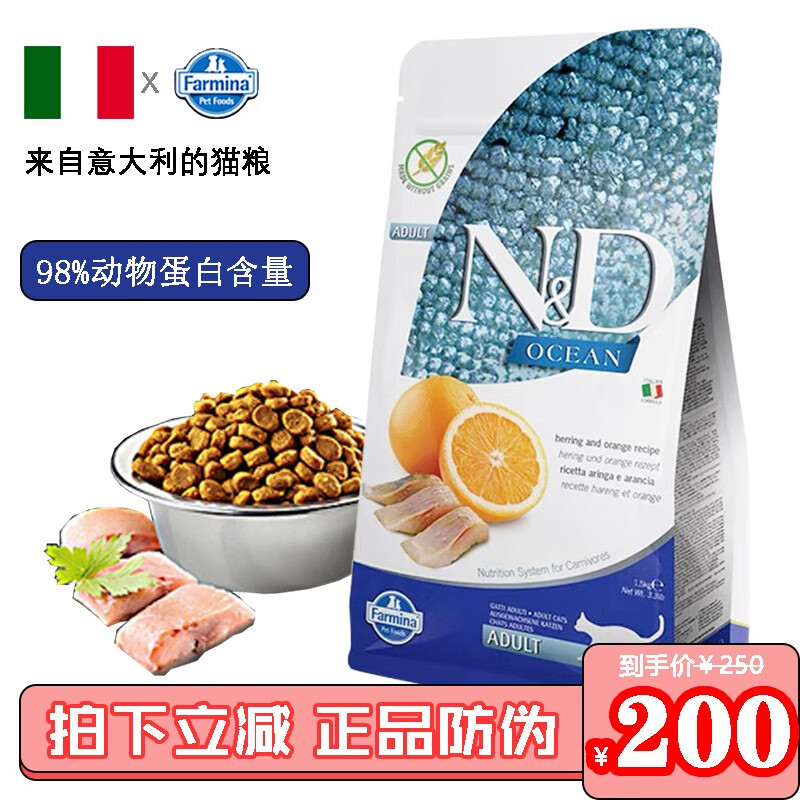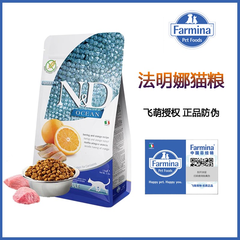 【找客服 券】法米娜猫粮Farmina原装进口法明娜天然无谷98%超高蛋白鸡肉鱼肉幼猫成猫猫粮 成猫鲱鱼甜橙1.5kg