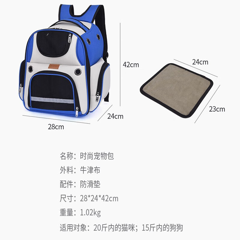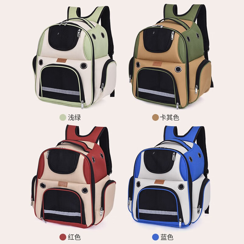 摩宠(moorpet)【赠垫板】猫包外出便携 透气双肩宠物包 大容量猫窝小狗狗背包 浅绿-20斤内猫15斤内狗