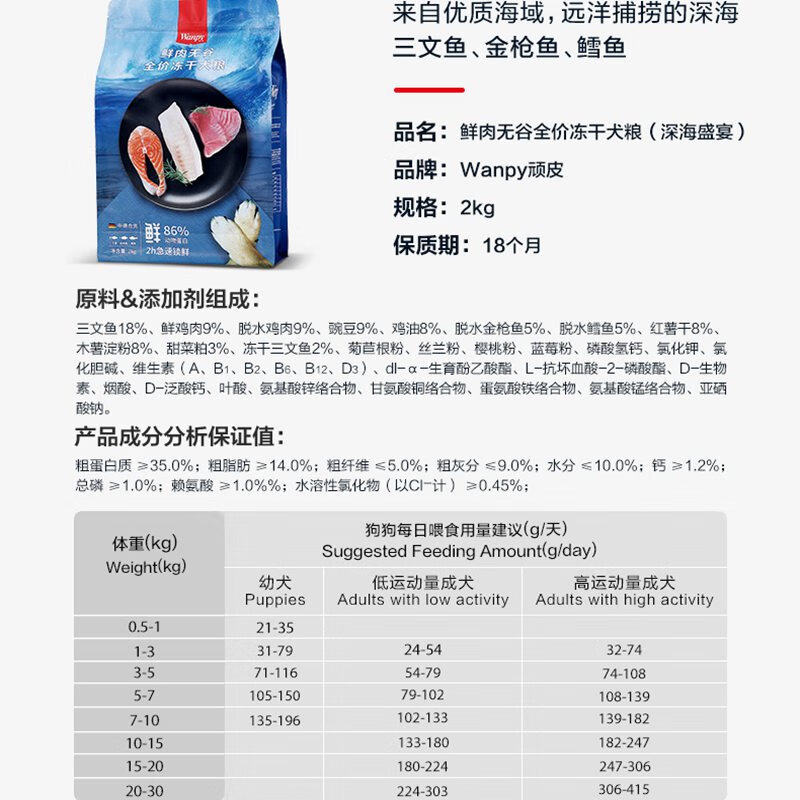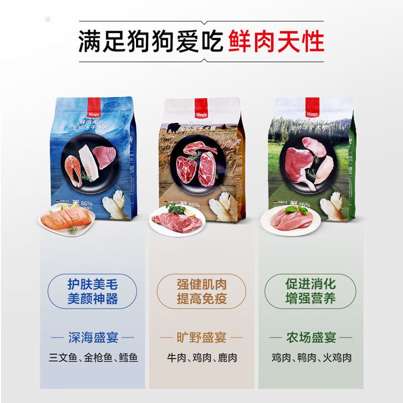 Wanpy顽皮盛宴狗粮旷野农场深海鲜肉无谷全价冻干狗粮成犬幼犬宠物10kg 深海盛宴【三文鱼金枪鱼鳕鱼】 10kg