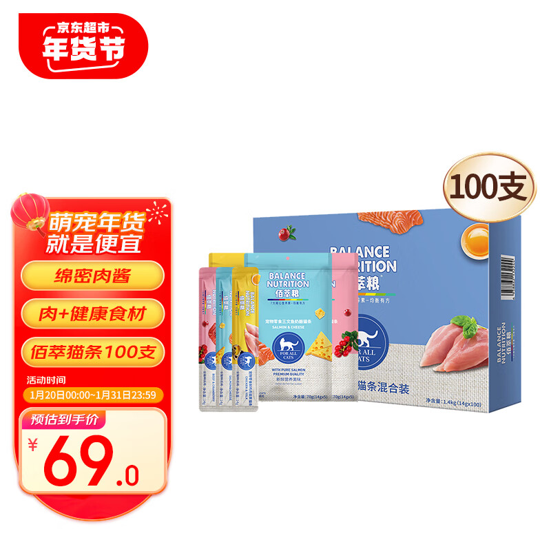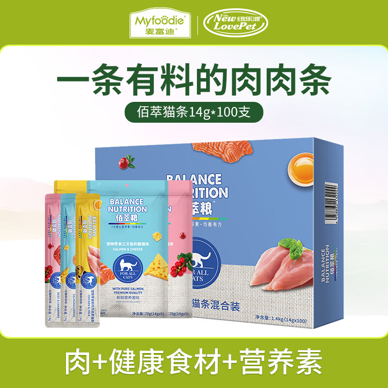 麦富迪佰萃猫条 猫零食成猫幼猫补水妙鲜湿粮 混合装14g*100支
