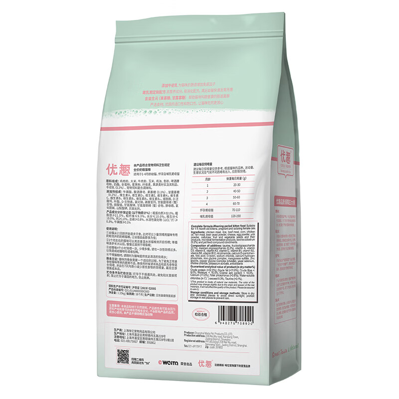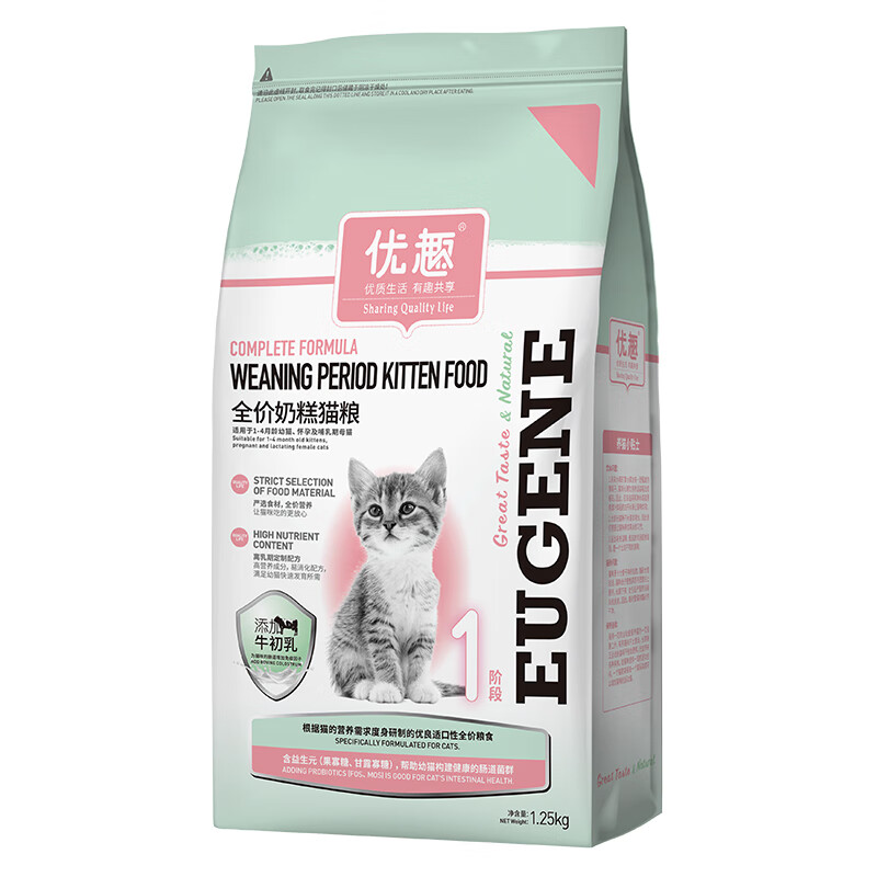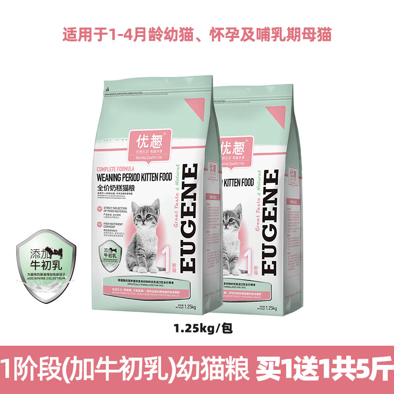 优趣猫粮幼猫粮奶糕粮添加牛初乳肉松全面营养1-4-12个月高蛋白1.25kg 1-4月(添加牛初乳 1阶段) 1.25kg