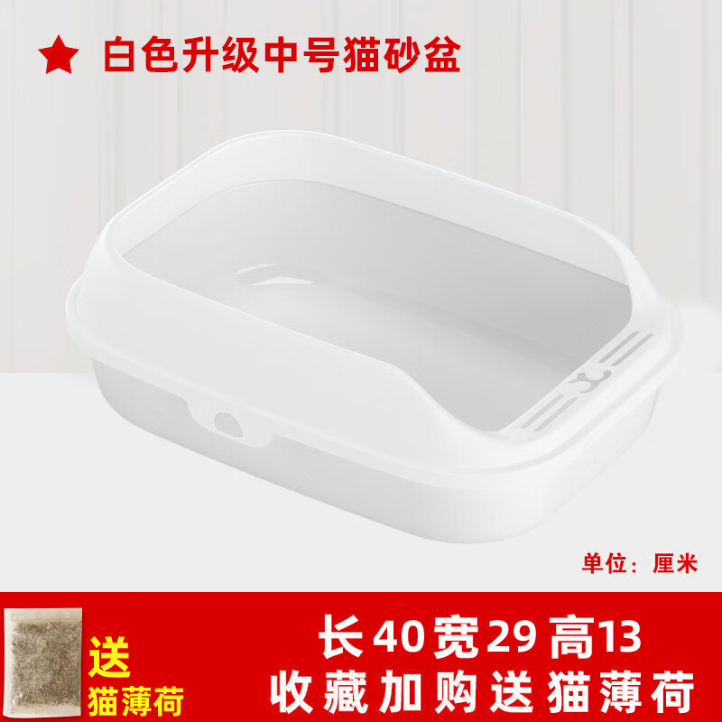 猫砂盆防外溅半封闭式猫厕所特大号超大猫沙盆防臭猫屎盆猫咪用品 【白色升级中号】收藏下单送猫薄荷