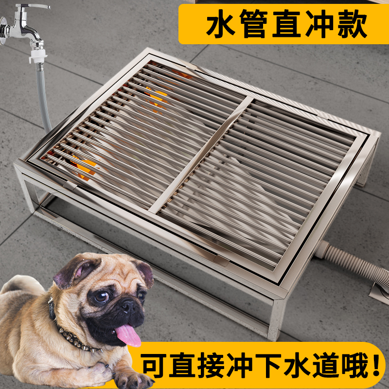 【狗厕所直通下水道】金百特 不锈钢漏斗托盘防踩屎可自动冲水 中大型犬清理狗尿盆 宠物厕所 【水管直冲款】直冲款-长125*宽75CM