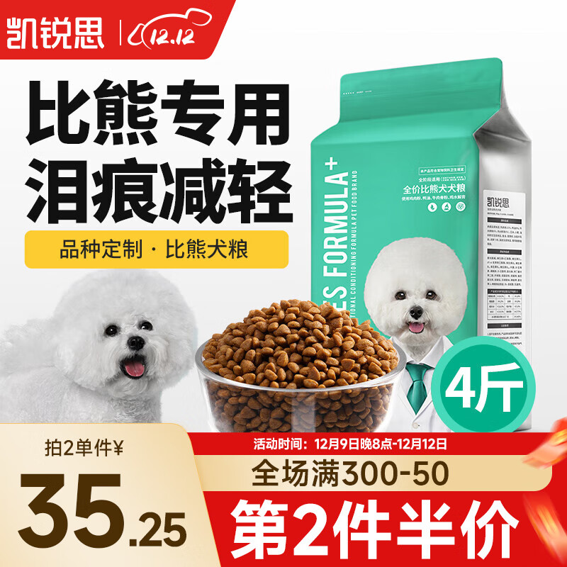 凯锐思比熊狗粮幼犬成犬专用白色美毛改善泪痕比熊犬专用粮奶糕 【经典款4斤】拍2单件丨36.75