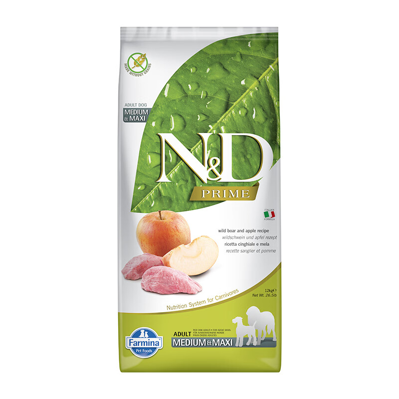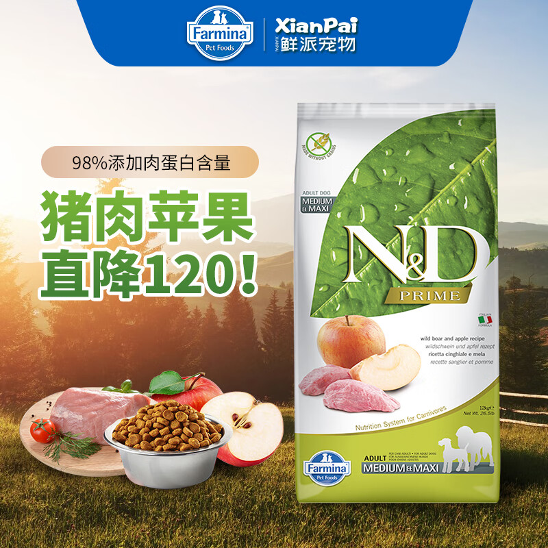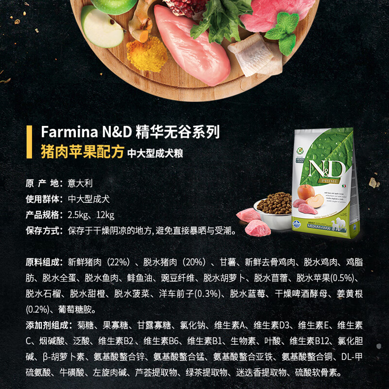法米娜(Farmina)进口狗粮 中大型犬成犬粮萨摩耶哈士奇无谷粮 猪肉苹果12kg