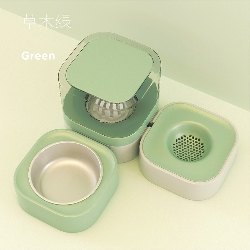 KimPets猫咪饮水机不插电流动喝水器狗狗自动喂水喂食猫防湿嘴打翻宠物碗 双碗-草木绿 M-中型