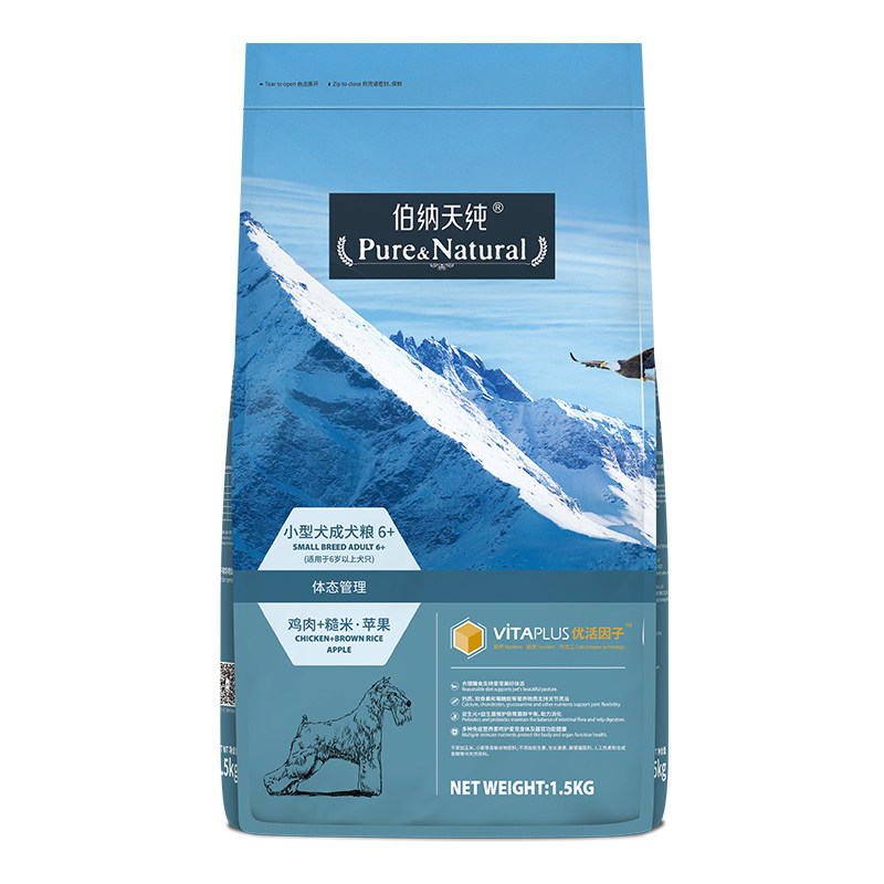 伯纳天纯老年犬粮1.5kg小型犬高龄犬专用狗粮6岁 泰迪柯基营养粮