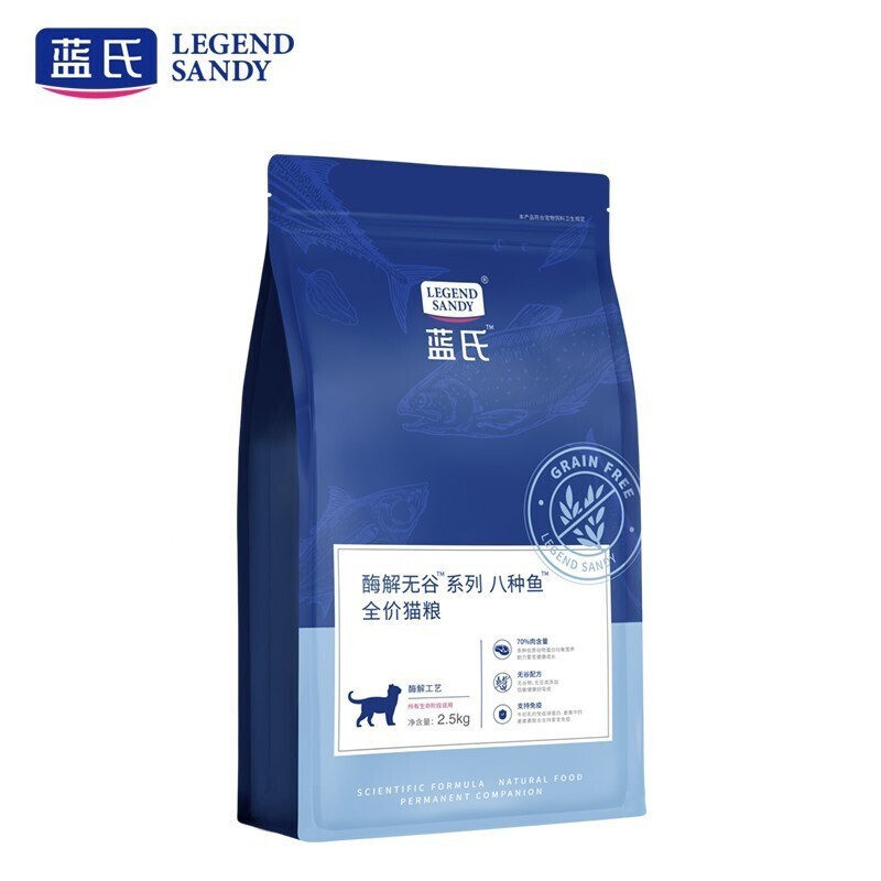 【有货】蓝氏(LEGENDSANDY)海陆盛宴八种鱼酶解成猫幼猫营养增肥通用猫粮2.5kg 八种鱼海鲜猫粮2.5kg