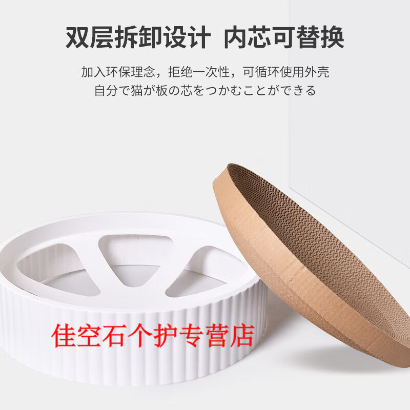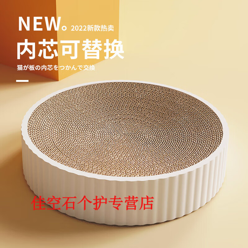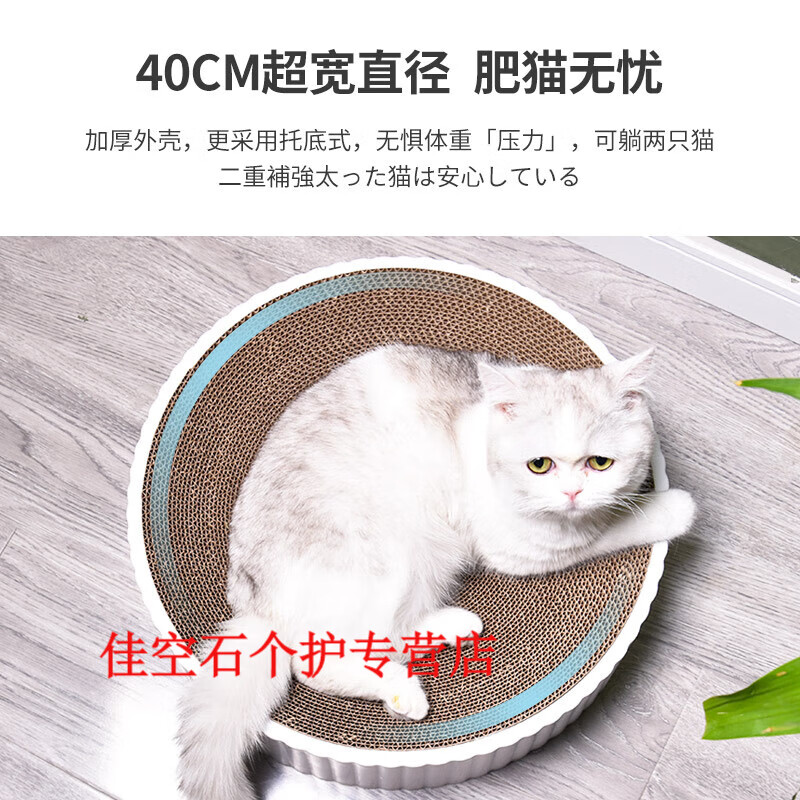 猫抓板窝圆形猫爪板耐磨瓦楞纸猫窝抓盘一体不掉屑猫玩具猫咪用品 典雅白特大号 猫薄荷 逗猫棒特