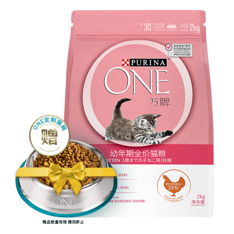 ONE(万牌)猫粮 幼猫6kg(2kg*3) 怀孕哺乳期及幼猫 呵护肠胃易吸收营养全价猫粮 【预售专用】