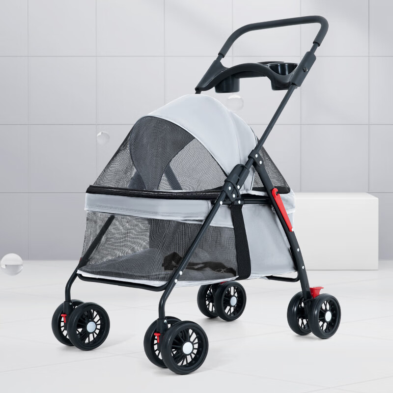 嬉皮狗(hipidog)宠物推车狗狗代步手推车外出神器猫咪泰迪中小型狗拉车轻便可折叠 灰色 猫犬通用