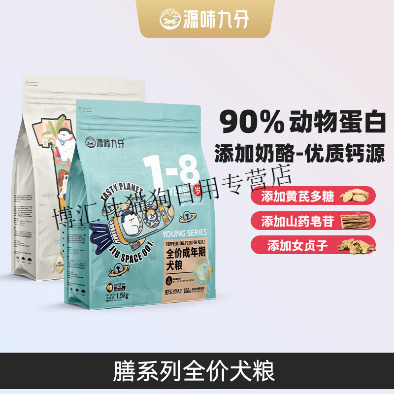 源味九分源味九分无谷全价全期成犬幼犬粮1.5KG通用狗狗主粮 无谷全价幼年期犬粮1.5KG