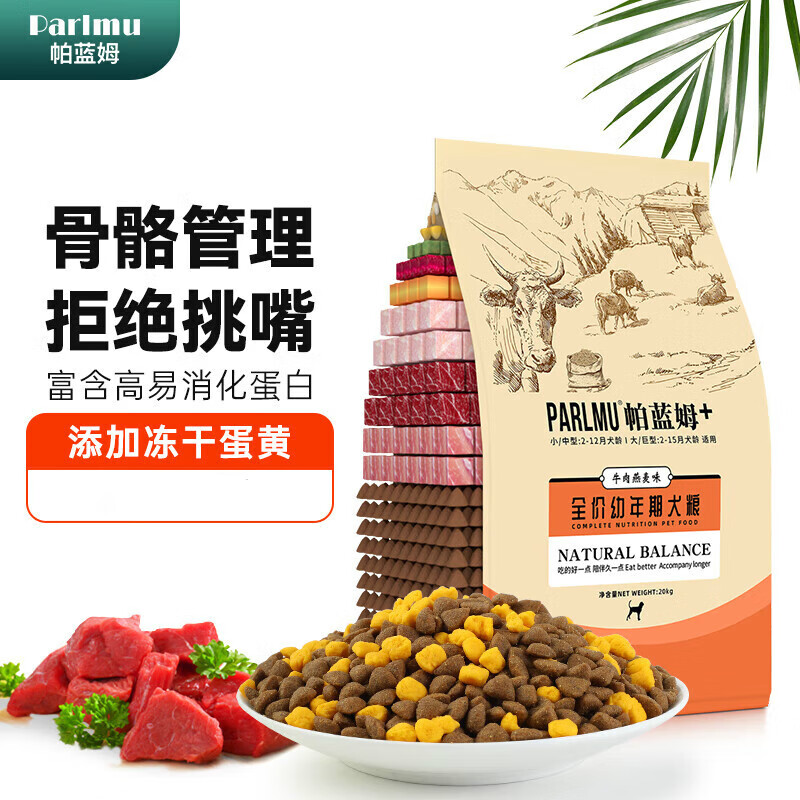 parlmu帕蓝姆三种肉幼犬狗粮40斤装20kg金毛拉布拉多马犬德牧全犬 全阶段丨冻干蛋黄 牛肉粒狗粮2kg