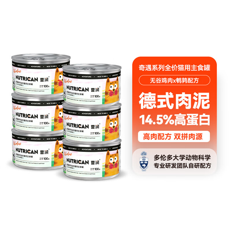 营润猫罐头 奇遇系列 全价成猫幼猫主食罐头 宠物猫咪零食湿粮100g 无谷鸡肉