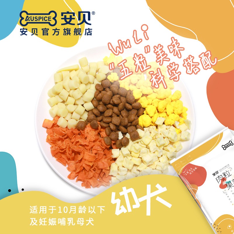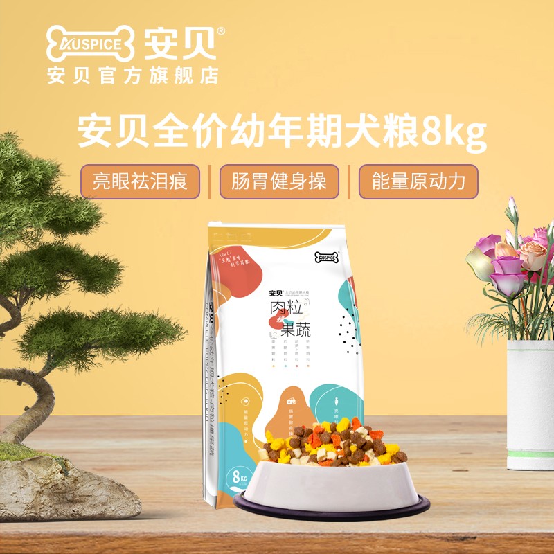 安贝狗狗粮成犬肉粒撞果蔬五拼狗粮全价通用适口性好挑嘴狗粮8kg 蛋奶味 8kg 幼犬 通用型