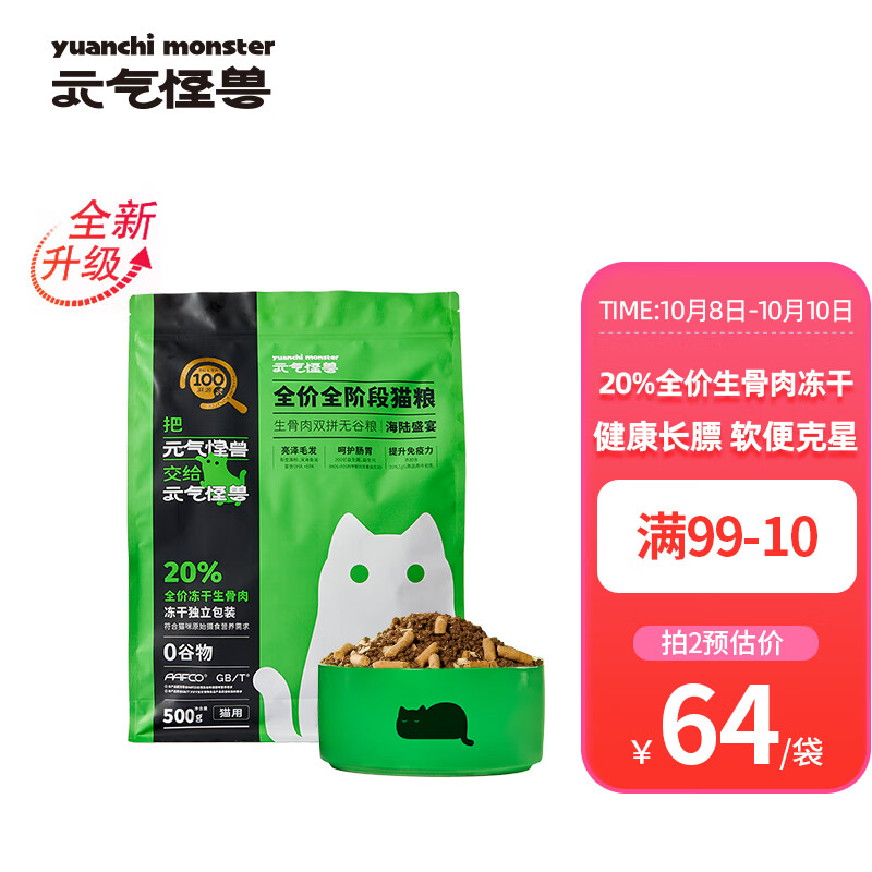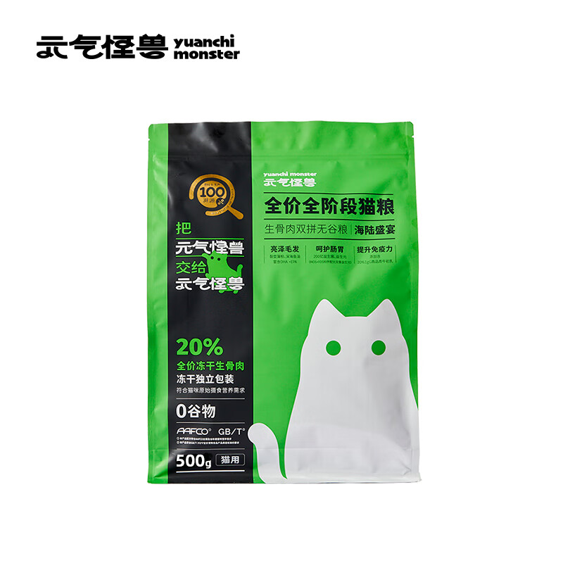 元气怪兽 冻干双拼全价猫主粮鱼肉味海陆盛宴500g*1袋 无谷主食猫粮布偶折耳幼猫成猫
