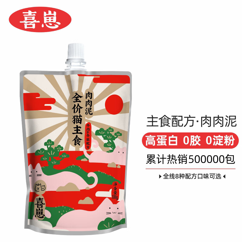 喜崽 全价主食肉肉泥牛肉猫罐头低脂高蛋白猫零食成幼猫湿猫粮100g