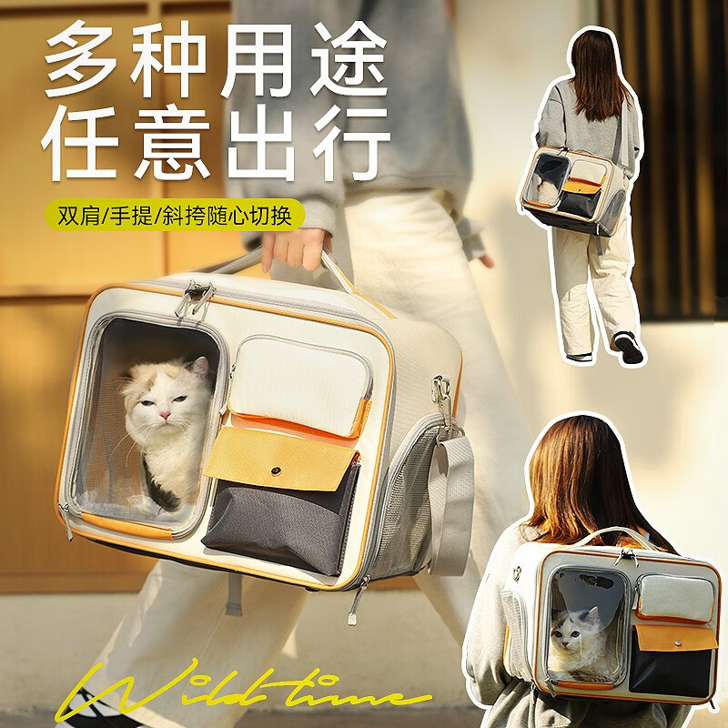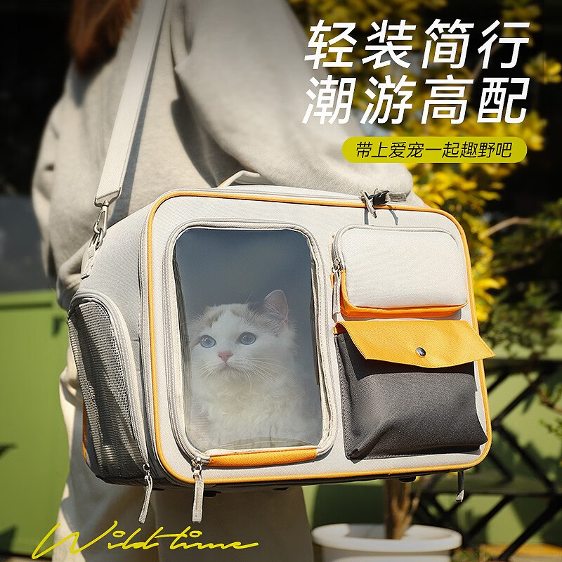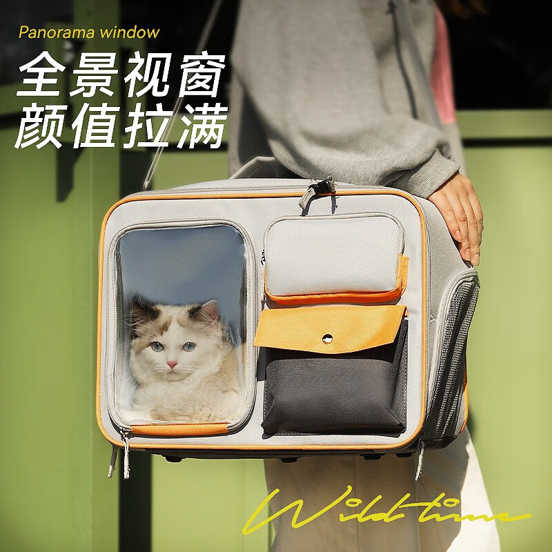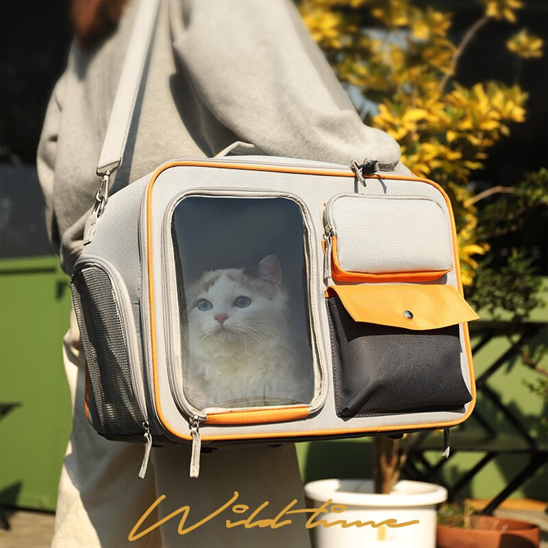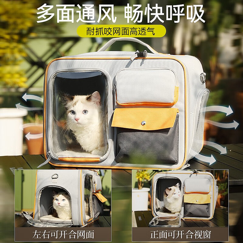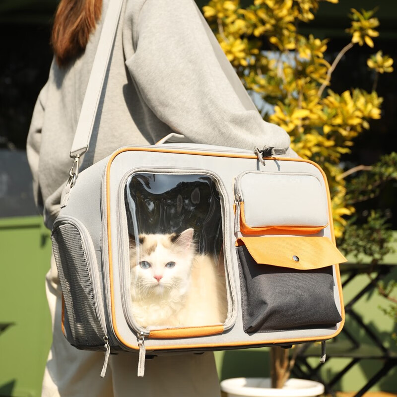 hoopet猫包外出便携宠物背包猫咪太空舱坐车神器可双肩斜跨狗狗包大容量 酷灰 颂斜挎可调节肩带 建议18斤内猫/12斤内狗