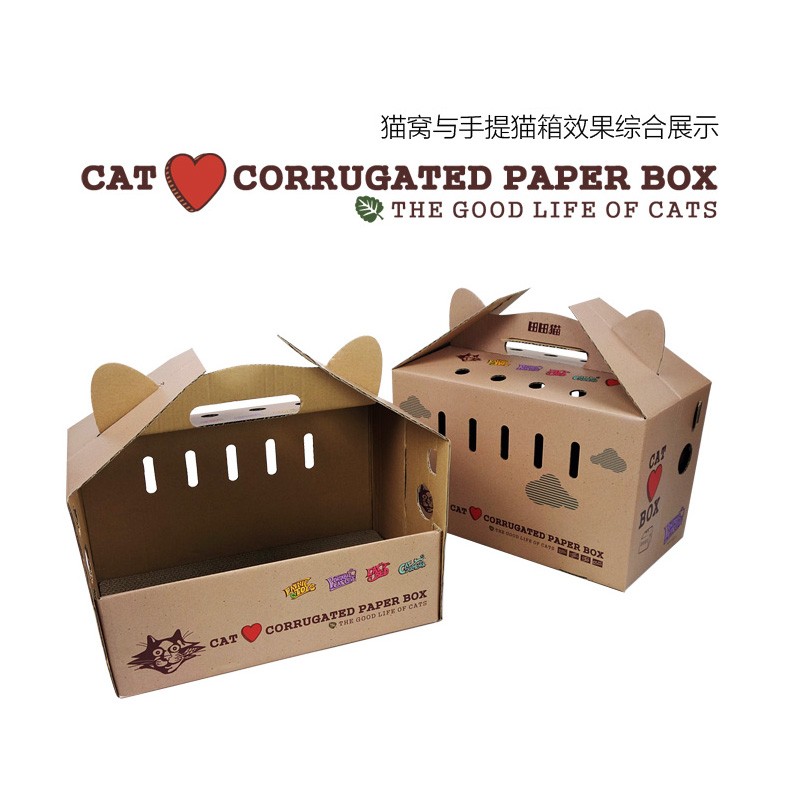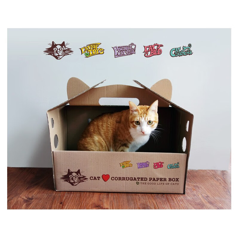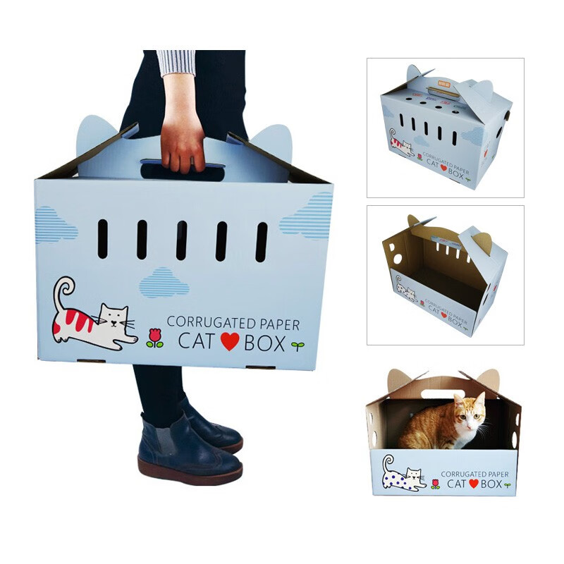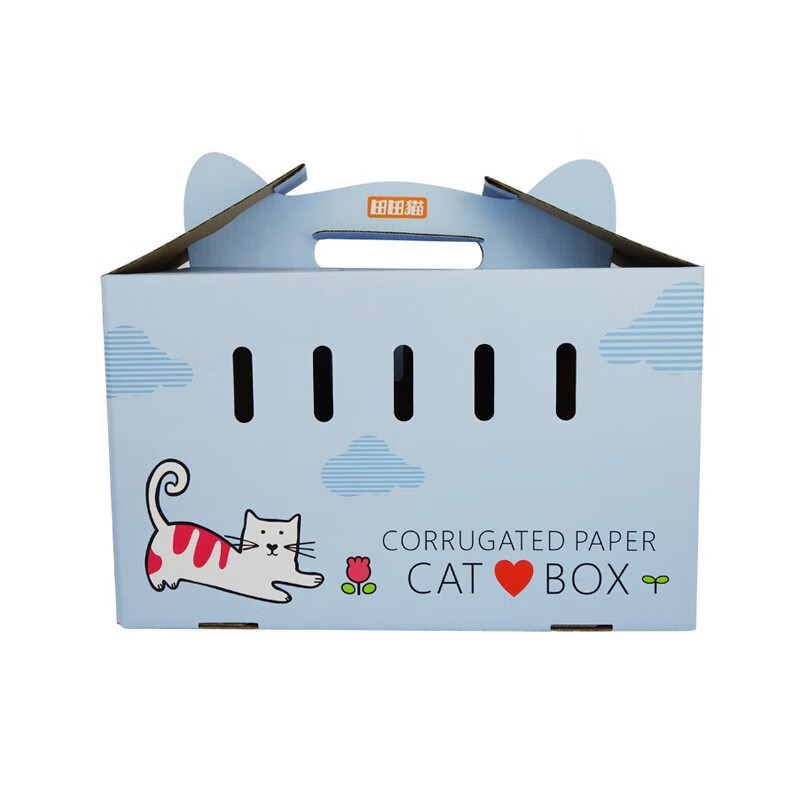 田田猫春夏可爱红屋顶瓦楞纸猫房子猫窝猫抓板猫玩具猫用品猫薄荷 【特价】手提猫箱-蓝色