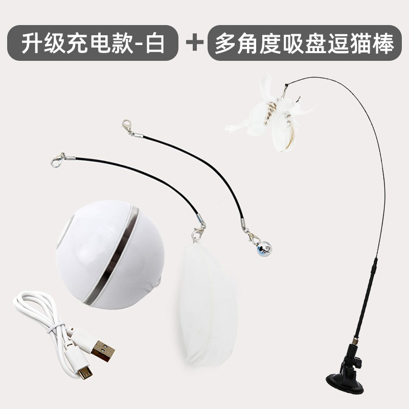 华元 逗猫球猫咪逗猫棒激光笔猫咪玩具自动智能电动玩具球宠物猫用品 升级充电款-白 多角度吸盘逗猫棒