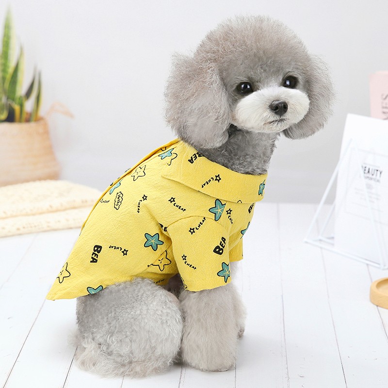 茨格曼 宠物狗狗衣服春秋猫咪衣服轻薄款泰迪比熊小型犬幼犬小狗防掉毛 黄色小星星-两脚【无弹 】 XL【建议8-12斤】
