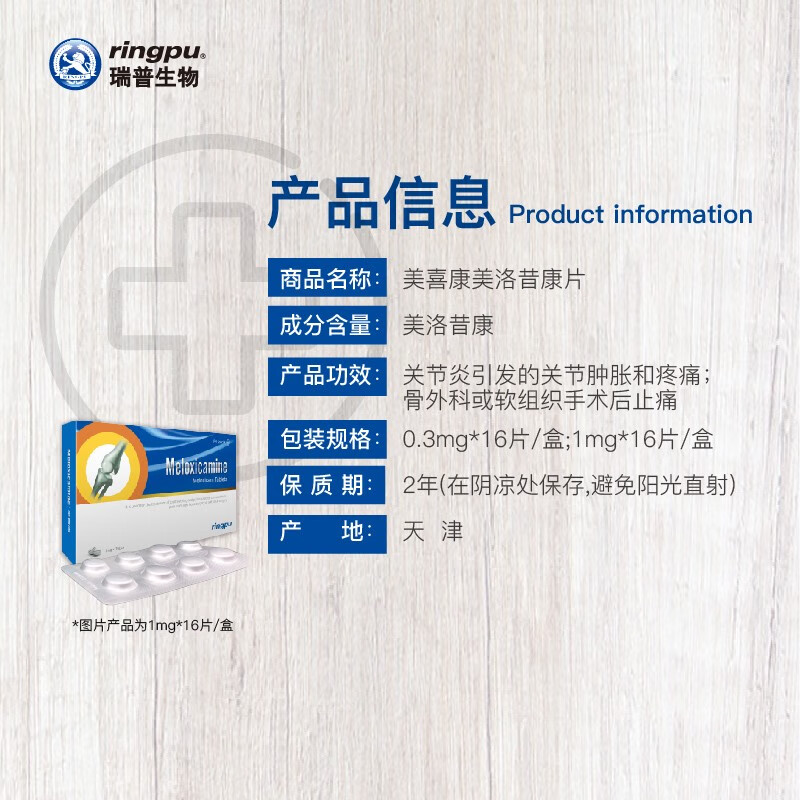 瑞普美喜康 美洛昔康片宠物猫咪狗狗犬骨关节炎关节肿胀疼痛术后止痛 0.3mg*16片/盒