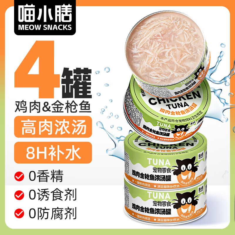 喵小膳猫咪补水罐头鸡肉成幼猫零食宠物营养猫咪湿粮 鸡肉金枪鱼85g*4罐
