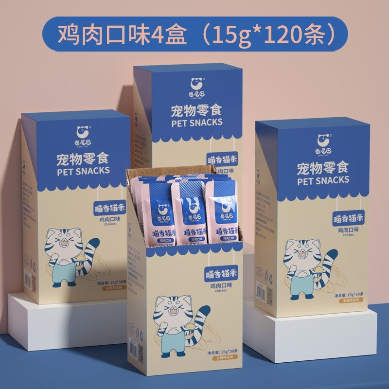卷尾巴(CURLY TAIL)猫条猫咪零食罐头湿粮营养成幼猫补水营养增肥奶糕 【囤货精选项】鸡肉味120条