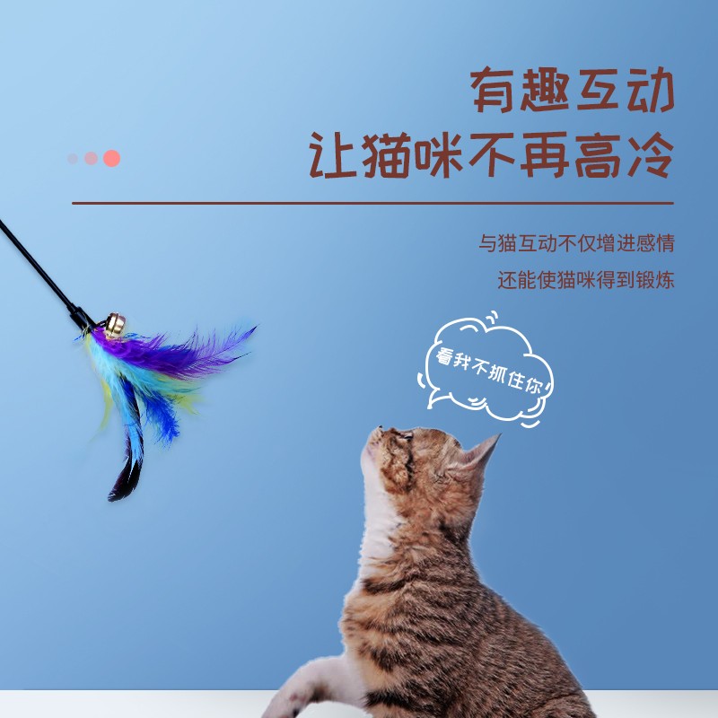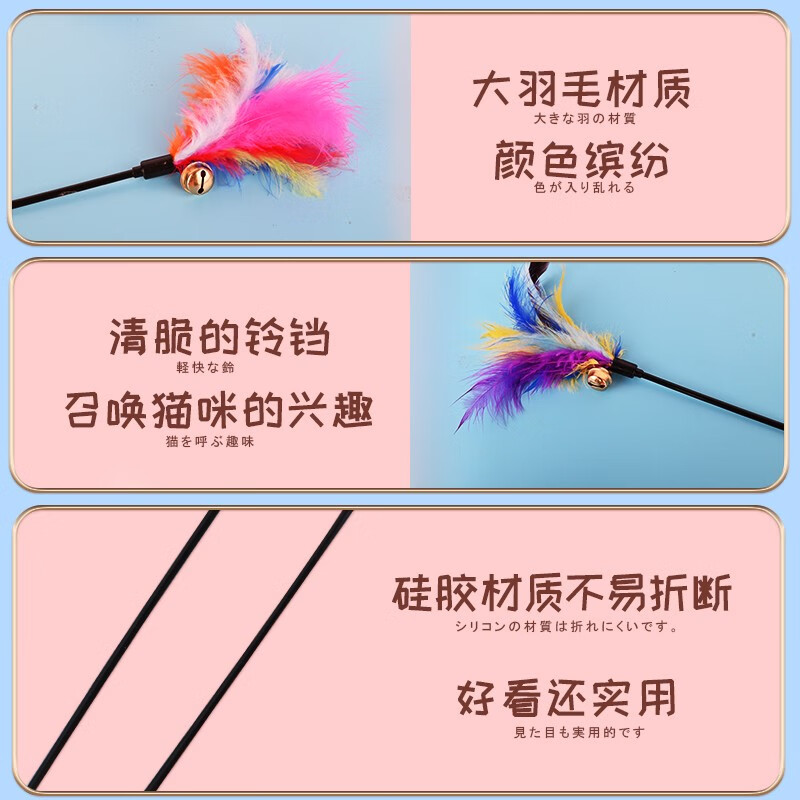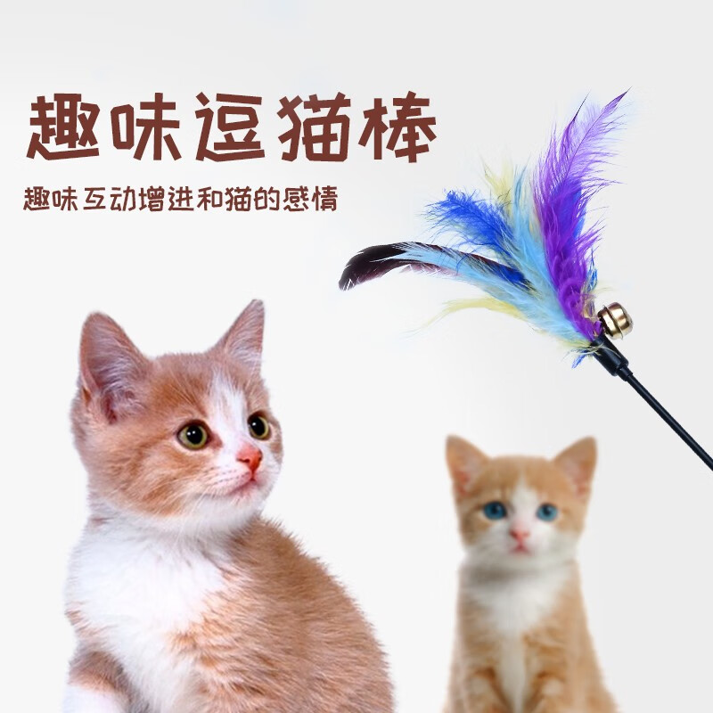 养只宠物 逗猫棒猫玩具自嗨铃铛羽毛小猫仙女解闷猫咪猫猫幼猫用品 【七彩逗猫棒】颜色随机1个装 无规格