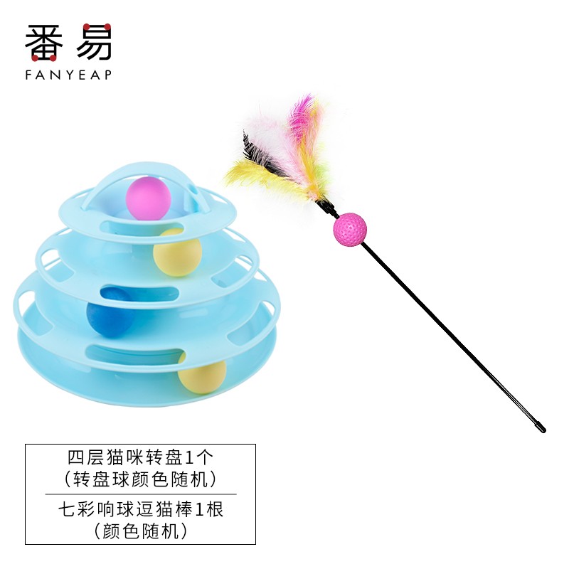 番易 猫玩具逗猫棒自嗨转盘铃铛球老鼠不倒翁激光笔逗宠物猫神器 四层猫转盘 七彩响球款逗猫棒
