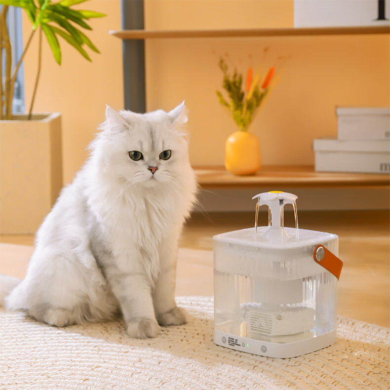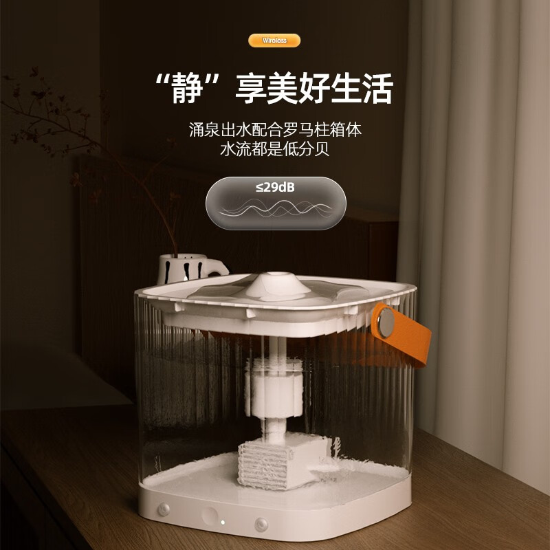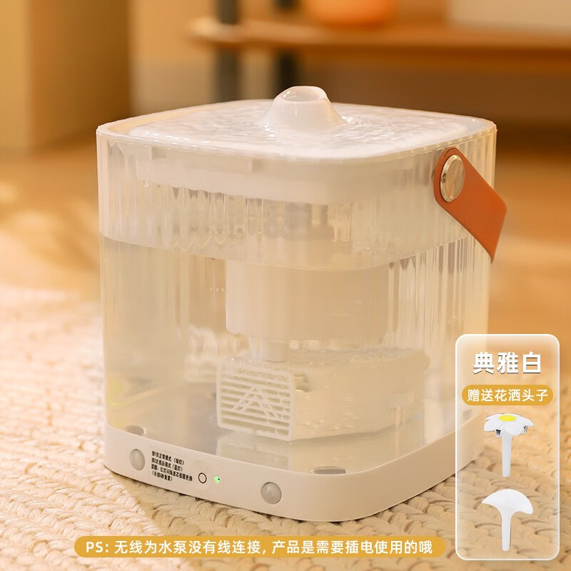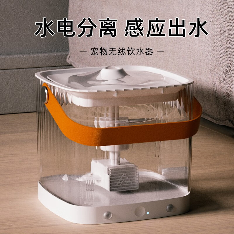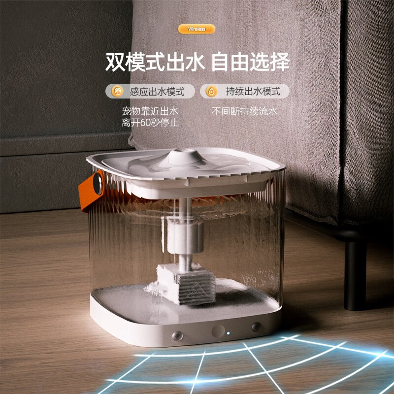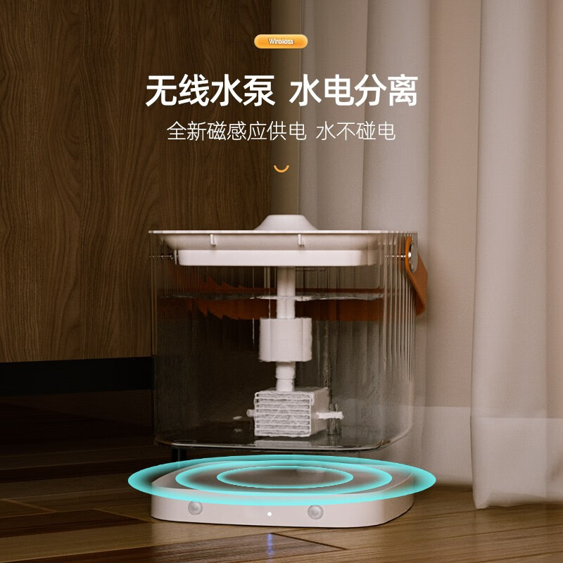 hoopet猫咪饮水机智能无线喂水器自动循环猫用水盆小猫狗狗不插电无线感应流动喂水神器宠物喝水器 无线饮水机-白