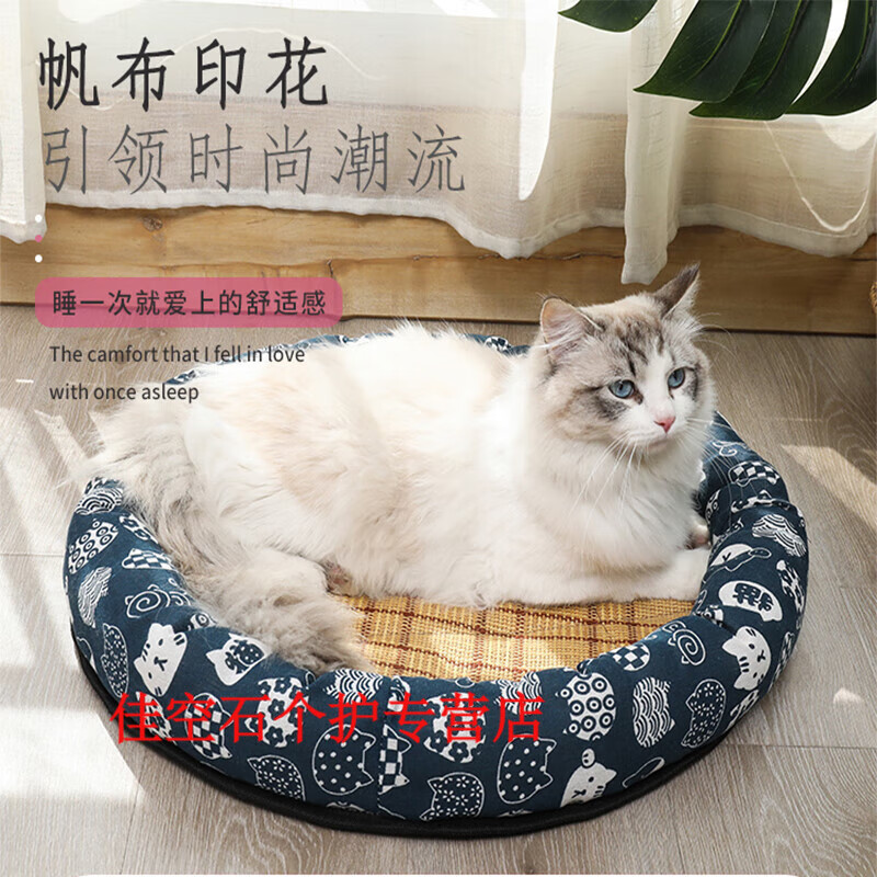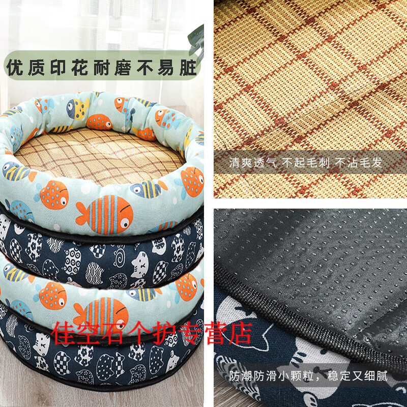 PETIO TOGETHER YOUR PRECIOUS LIFE夏季凉席猫窝狗窝四季通用猫咪床可水洗夏天幼猫大猫狗宠物床 湖绿色多宝鱼pp棉填充回弹性好 S码直径35cm建议体重3斤内猫狗