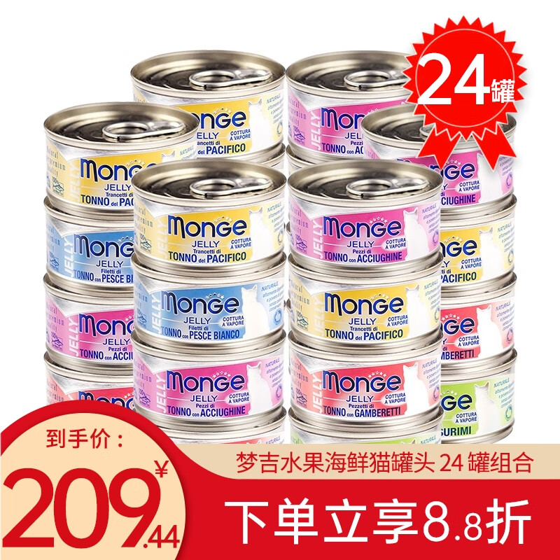 MONGE意大利梦猫罐头吉天然果冻水果金枪鱼成幼猫老年猫湿粮零食 24罐 果冻系列 混拼