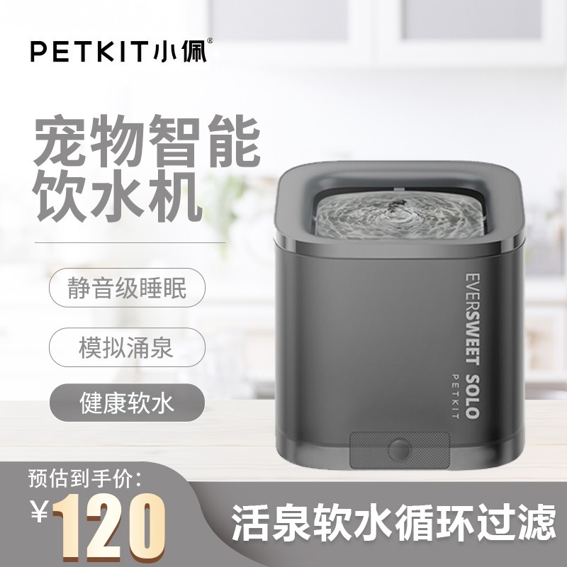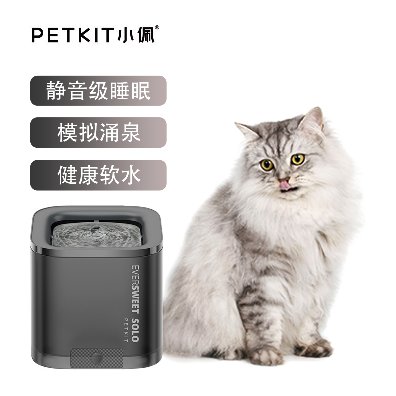 小佩宠物饮水机 SOLO款三代二代无感应电智能自动猫咪狗饮水机猫过滤喝饮水器用品 猫狗碗 宠物碗 烟灰色